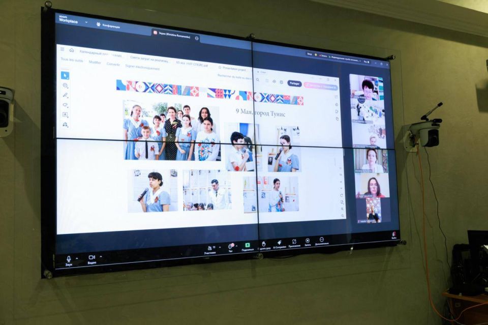 В ходе телемоста участники из разных стран поделились своими проектами. Президент Тунисско-Российской ТПП Христина Романенко рассказала о двух проектах, которые уже были реализованы в Тунисе. Это проект о героях Великой Отечественной и конкурс детских рисунков, посвященный юбилею Победы: