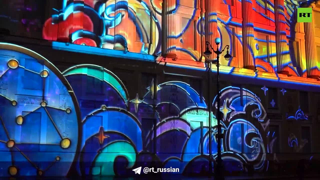 Масштабное световое шоу на Дворцовой площади в Петербурге в честь 185-летия Чайковского.
