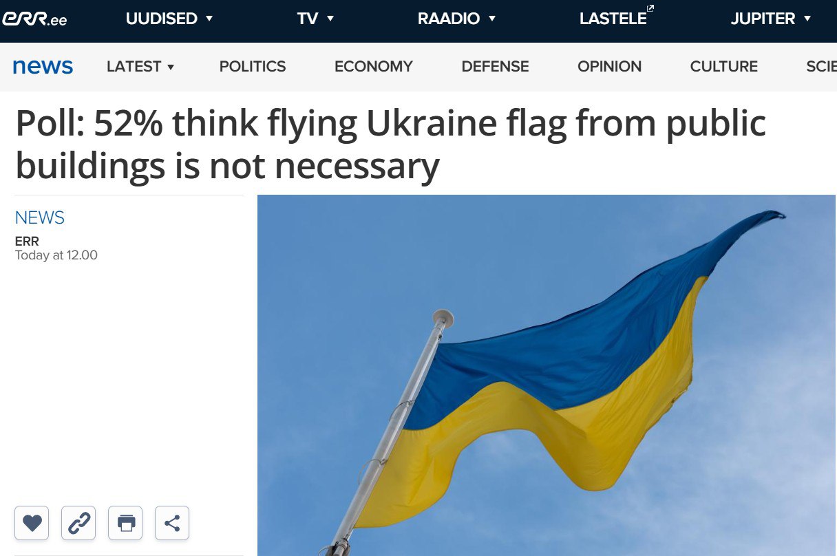 ’52% эстонцев считают, что необязательно вывешивать флаги Украины на общественных зданиях’ – ERR