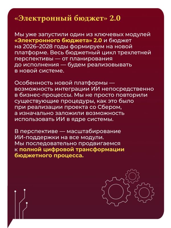 На этот и другие вопросы о том, как ИИ внедряется в бюджетный процесс и меняет его, рассказала в интервью журналу «Бюджет» Первый заместитель Министра финансов РФ Ирина Окладникова.