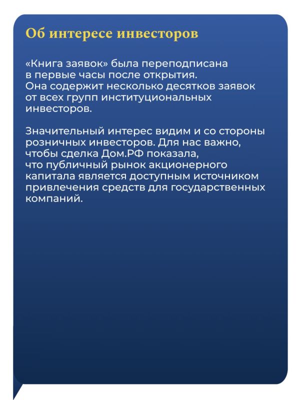 В преддверии размещения акций Дом.РФ об этом в блиц-интервью ИА «РИА Новости» рассказал Министр финансов России Антон Силуанов.