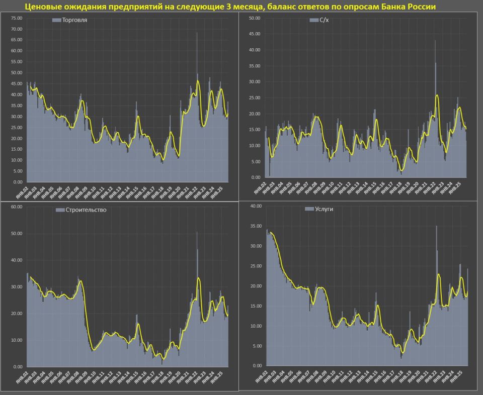 Налоговый маневр. Предприятия закладывают в будущие цены ожидаемое увеличение налоговой нагрузки, которое вступит в силу с января 2026 года, на что акцентирует внимание ЦБ в своем обзоре, как одна из главных причин роста ИО.