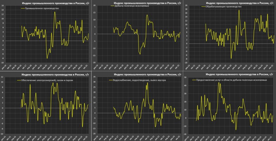 Весь впечатляющий прирост обусловлен отдельными секторами в ВПК, но с начала 2025 в гражданских отраслях усиливается негативная динамика.
