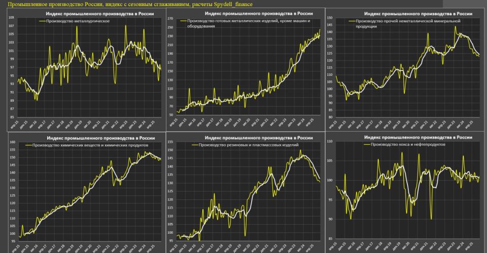 • Химическое производство: (-2.7%) г/г, +2.6% и +23%, за 10м25 (-1.0%) г/г, +4.1% и +23%.