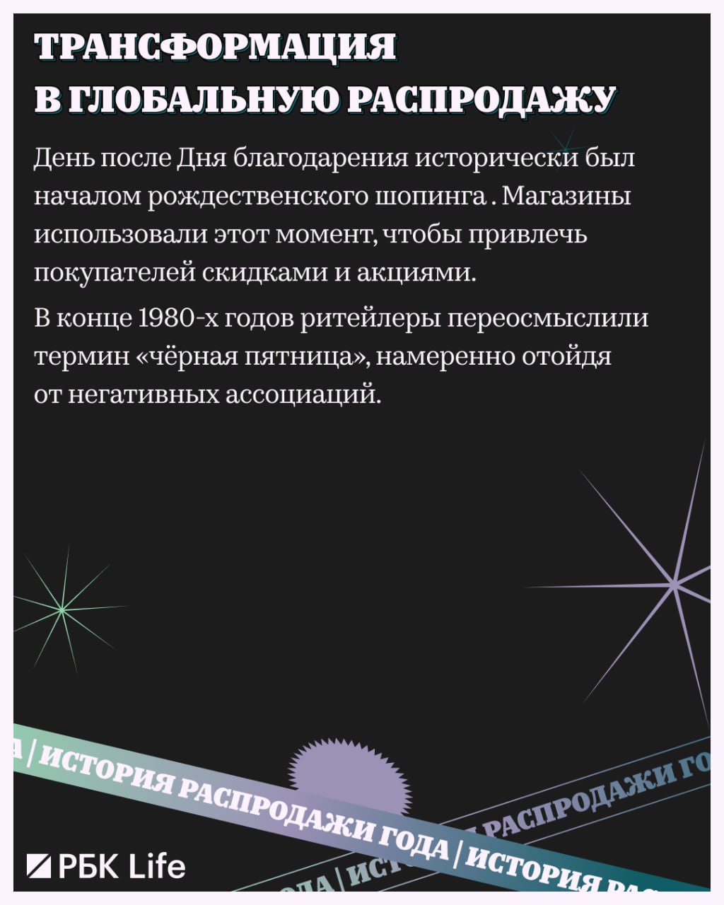 В карточках — факты из истории главного шопингсобытия. Листайте!
