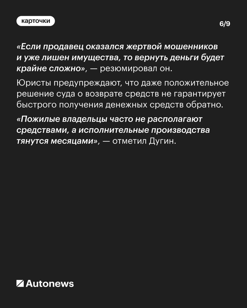 Подобные мошеннические схемы активизировались на рынке подержанных автомобилей. Уже известно о ряде случаев, когда добросовестные покупатели, совершив сделку с пенсионерами, остались без денег и без машины.