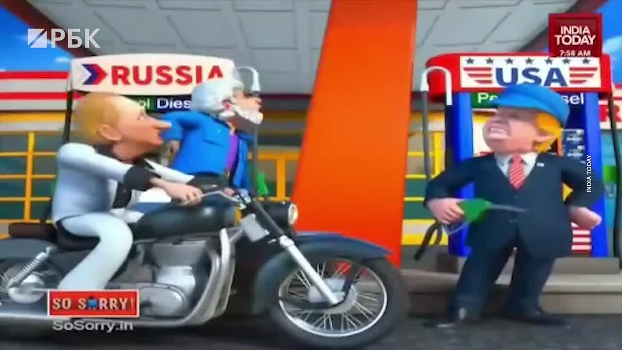 Канал India Today показал мультфильм с Нарендрой Моди и Владимиром Путиным — в нем они катаются на мотоцикле с коляской и поют песню о дружбе. Политики проезжают мимо нефтяных вышек, зенитно-ракетных комплексов (ЗРС) С-400 и бензоколонки, у которой стоит рассерженный президент США Дональд Трамп.