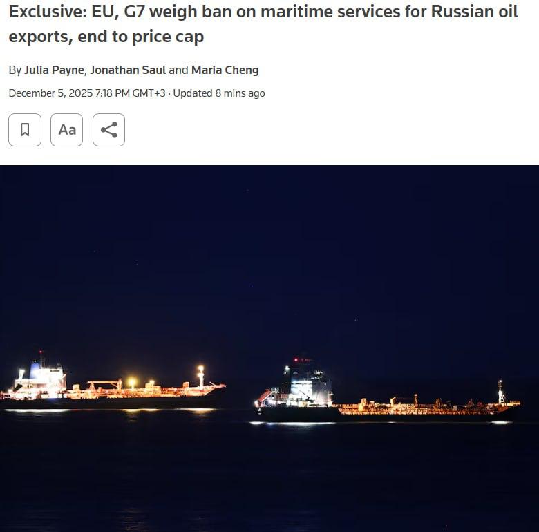 Страны G7 и ЕС хотят заменить ценовое ограничение экспорта российской нефти полным запретом на её морские перевозки.