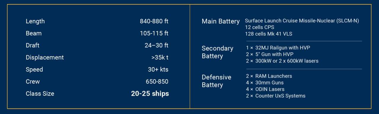 Видимо, в США решили радикально ответить сторонникам идеи «век больших кораблей прошел» и выкатили проект линкоров с ракетно-лазерным вооружением в рамках плана «Золотого флота». Назвали их скромно — Trump-class.