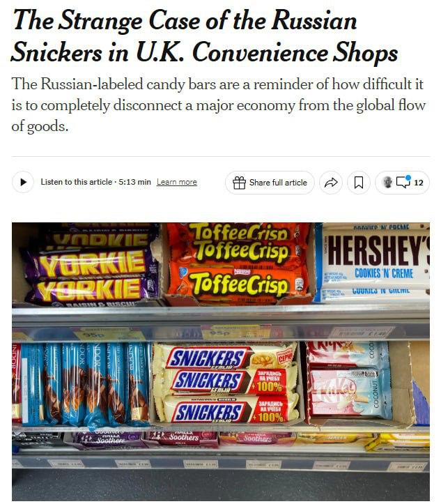 Батончики Snickers российского производства нашли в Лондоне, пишет NYT.