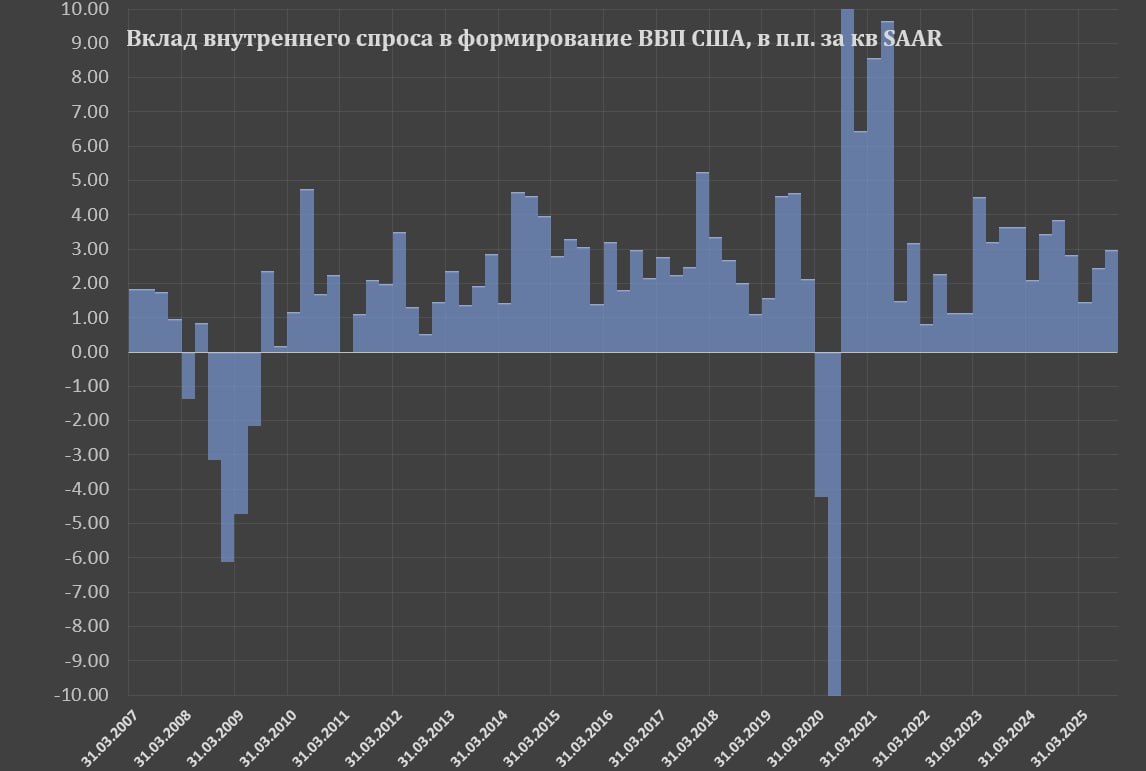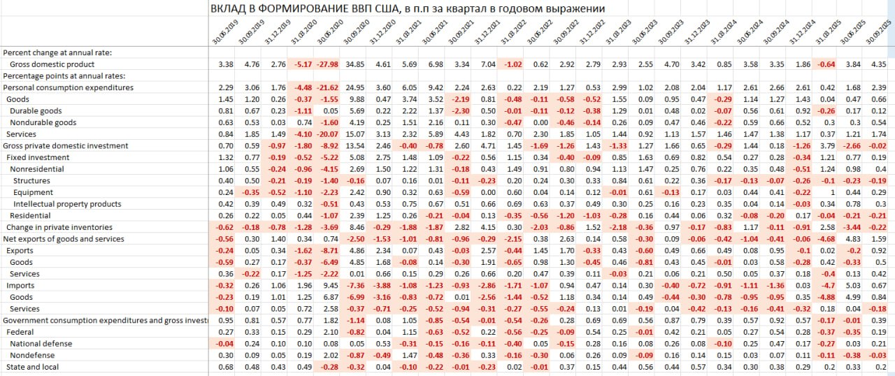 Данные по ВВП за 3кв25 были задержаны более, чем на 2 месяца от типичного времени публикации, но тем не менее – это последние данные, которые собирались в относительной «нормальности». С начала октября по середину ноября – глушняк и бардак, спровоцированный 1.5 месячной клоунадой с шатдауном, что отразилось на фейковых данных по инфляции и другим макро-показателям.