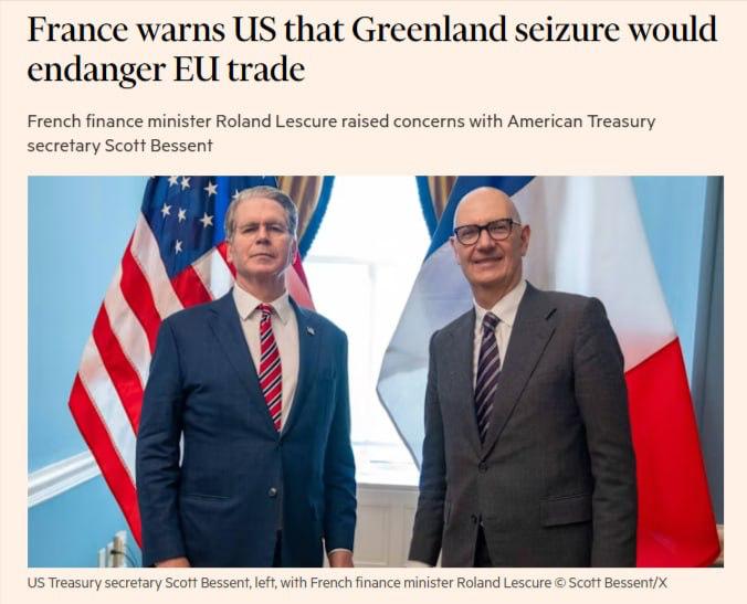 Как сообщает FT, об этом французский министр финансов Ролан Лекюр предупредил своего американского коллегу. Подчеркнул: любой шаг по захвату острова будет равносилен переходу «красной линии».
