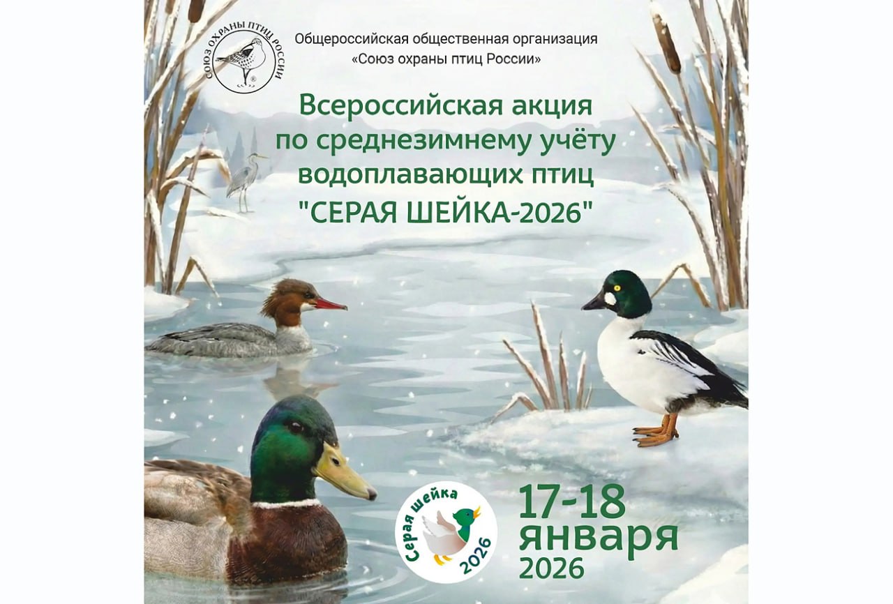 В эти выходные, 17 и 18 января, по всей России проходит Всероссийская экологическая акция по среднезимнему учёту водоплавающих птиц «Серая шейка – 2026». Все желающие могут посетить ближайшие водоемы и посчитать водоплавающих пернатых, оставшихся зимовать. Принять участие в акции приглашают и юных жителей Верхневолжья вместе с родителями.
