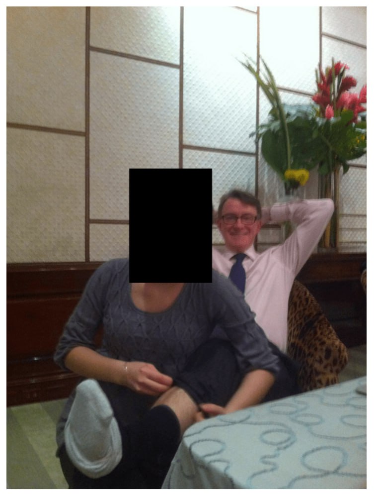 О чём именно речь — неясно. Также в рассекреченных файлах есть фото Мандельсона с неизвестной девушкой, которая держит его ногу.