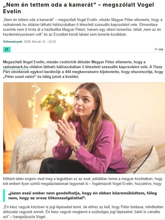 ‘2 августа 2024 года партия ‘Тиса’ организовала летнюю встречу для своих сторонников. Я тоже принял в ней участие. В конце мероприятия появилась Фогель Эвелин и пригласила меня на прогулочный катер, а затем в частную квартиру на домашнюю вечеринку. В тот период мы уже не состояли в отношениях, однако в тот вечер я не осознавал, что могу иметь дело с операцией спецслужб [Петер считает, что это всё подстроили Орбан и русские]. Поэтому я позволил себя уговорить.