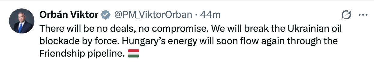 "Никаких сделок, никаких компромиссов. Мы силой прорвем украинскую нефтяную блокаду", — заявил он.