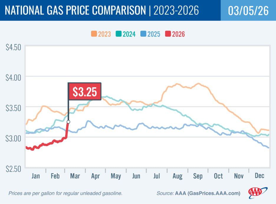 Что с ценами?Средняя цена за галлон в США подскочила до $3.25 (около 68 рублей за литр), что на 27 центов выше, чем неделю назад. Аналитики уже сравнивают ситуацию с мартом 2022 года, когда начало СВО вызвало шок на рынках.