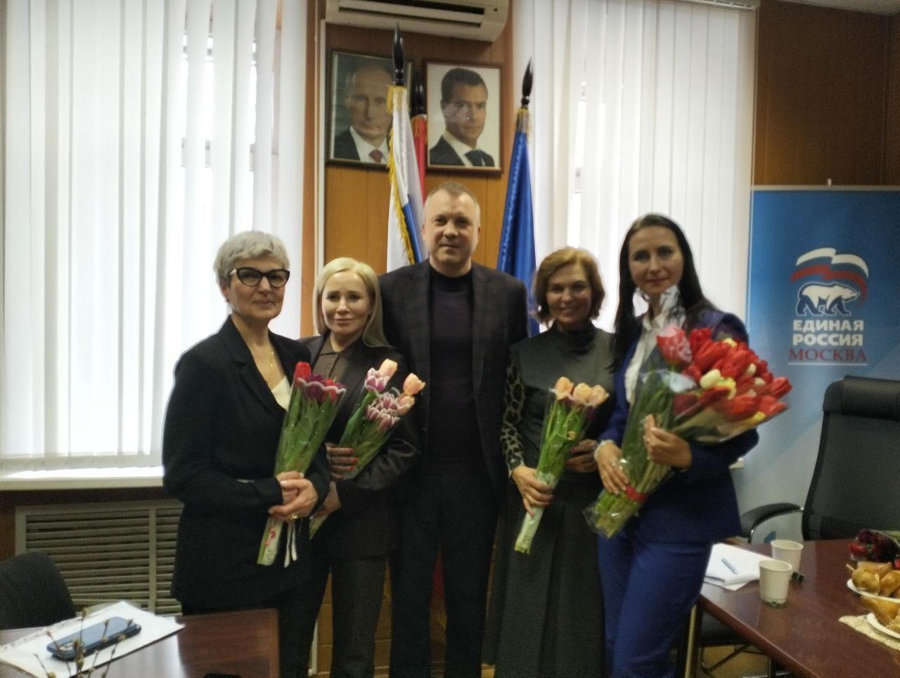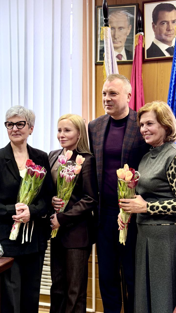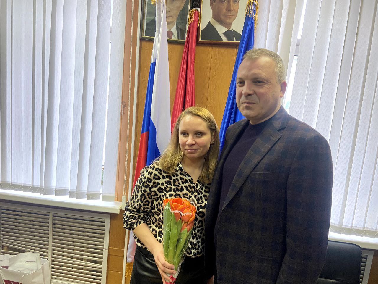 Депутат тепло поздравил женщин с Международным женским днём и вручил цветы.