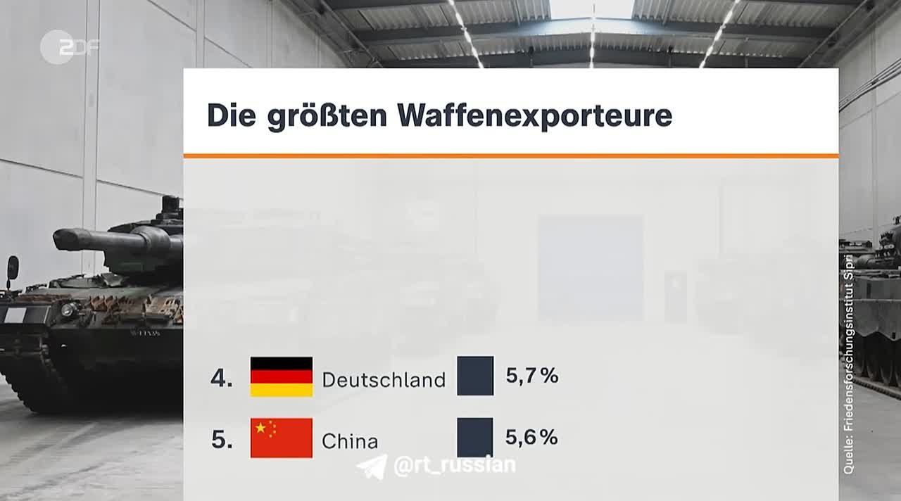 Франция под флагом России, а Италия — под французским: немецкий телеканал ZDF выдал инфографику о крупнейших экспортёрах оружия в мире, перепутав флаги стран.