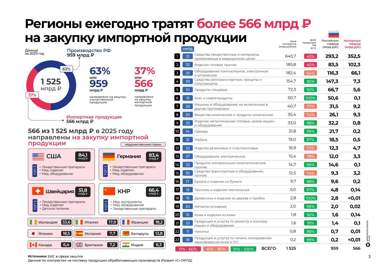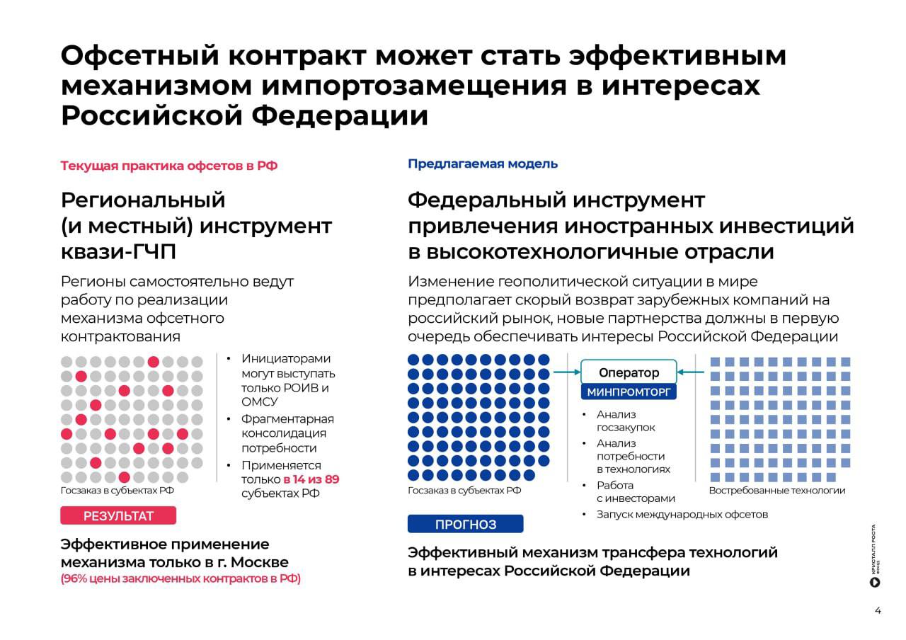 «Доля импорта в региональных госзакупках промышленной продукции до сих пор составляет около 40%, его большая часть приходится на поставки из недружественных стран, что прямо противоречит интересам экономической безопасности России. При этом офсетные контракты могут не только решить задачи импортозамещения, но и дать российским регионам дополнительно 1,5 трлн рублей капиталовложений, — подчеркнул Александр Галушка