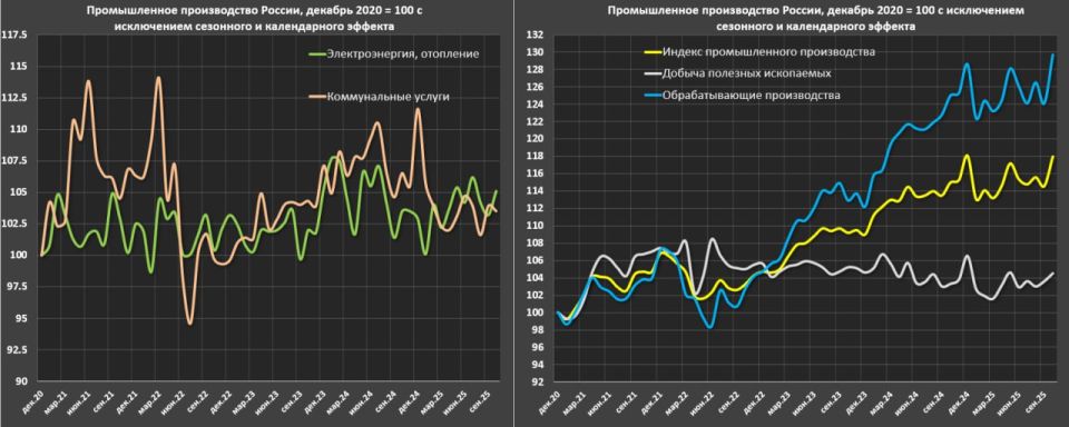 Объем промпроизводства резко вырос на 3% м/м SA в октябре (максимальный рост за 5 лет) после снижения на 0.9% м/м в сентябре по оценкам Росстата.Это действительно аномальный разброс, хотя методика расчета с исключением сезонного и календарного...