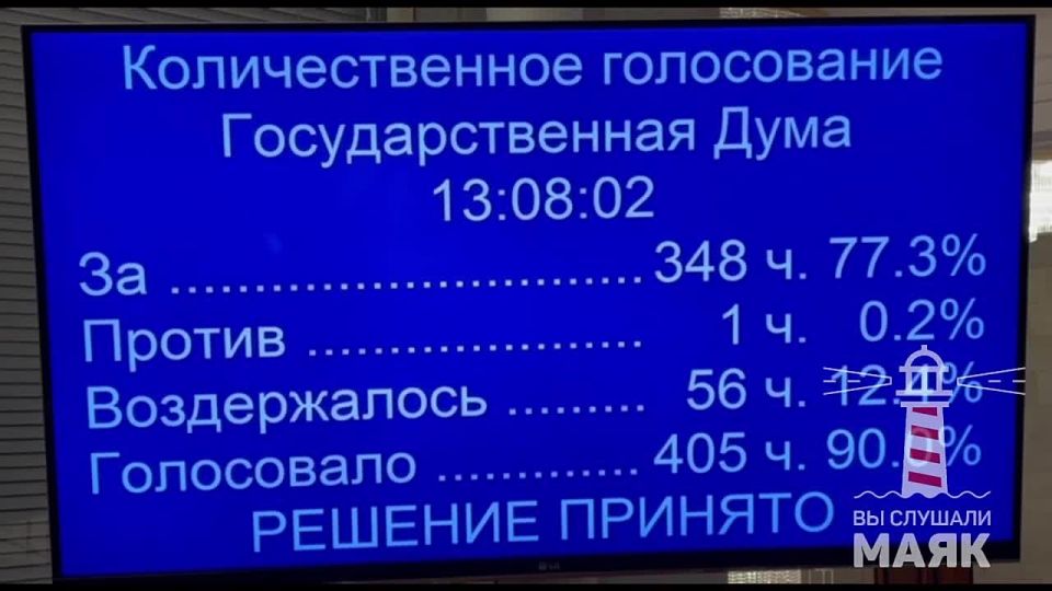 Против проголосовал всего один депутат.