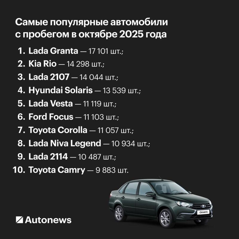 Топ-10 моделей В октябре 2025 года россияне приобрели 682 813 легковых автомобилей с пробегом, сообщил «Автостат Инфо». С сентября продажи выросли на 17%, а также поднялись на 8% по сравнению с октябрем прошлого года (633,8 тыс. шт.).Однако по...