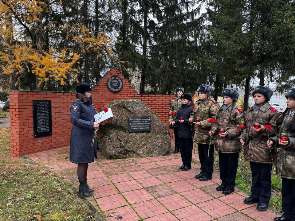 8 ноября — День памяти погибших при исполнении служебных обязанностей сотрудников органов внутренних дел Российской Федерации. В преддверии этого дня на территории Управления Госавтоинспекции УМВД России по Тверской области сотрудники Госавтоинспекции и кадеты СОШ № 16 возложили цветы к мемориалу памяти коллег, безвременно ушедших из жизни на боевом посту.