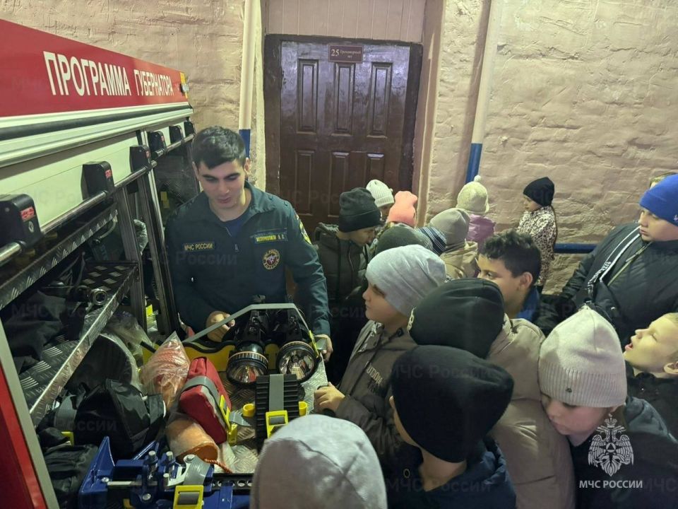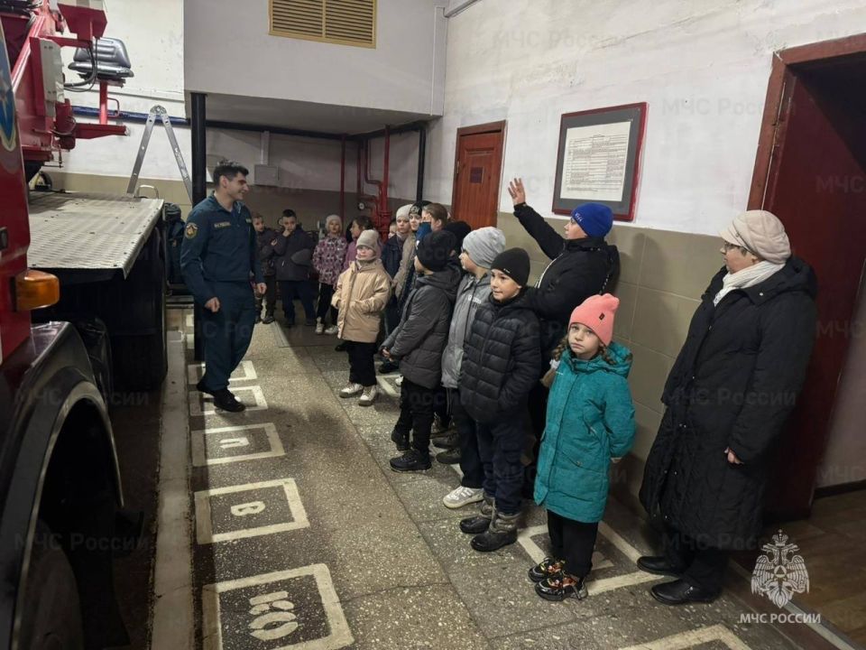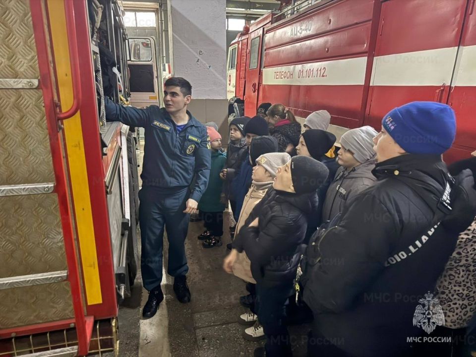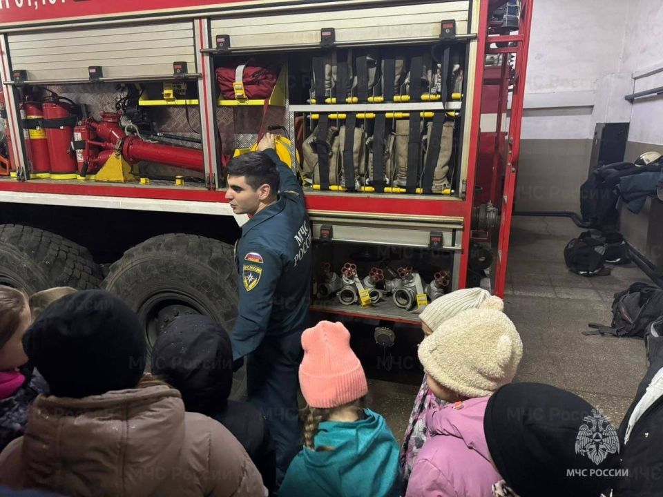 Ребята послушали рассказ о правилах поведения при возгорании, о том, какие бывают средства пожаротушения и о том, как пожарные ежесуточно несут службу в дежурных караулах и в любую погоду по сигналу тревоги выезжают на место ЧС. Детям также напомнили телефоны вызова экстренных служб.