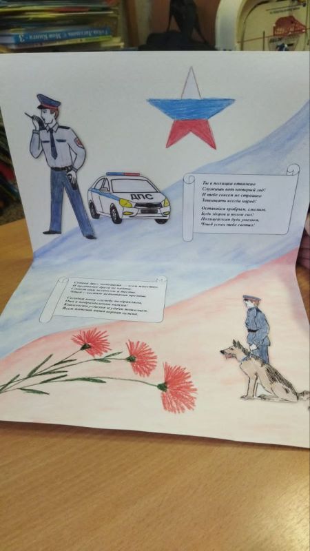 Каждая открытка стала уникальным произведением искусства, в котором дошкольники выразили свои представления о работе сотрудников полиции, их мужестве, доброте и готовности всегда прийти на помощь. На красочных открытках можно увидеть изображения полицейских машин, постовых, регулирующих движение, а также добрые пожелания здоровья, успехов в службе и мирного неба над головой.