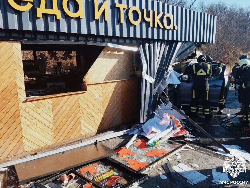 Иномарка на огромной скорости снесла придорожное кафе во Владивостоке, один челок погиб, несколько пострадали, сообщили в МЧС.