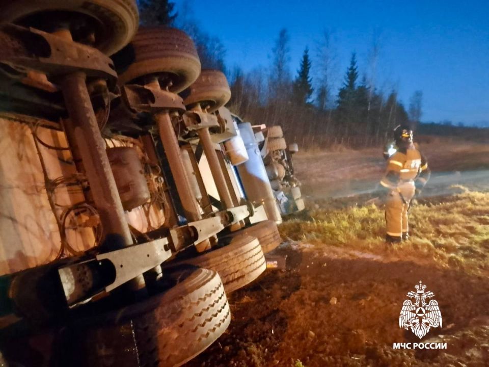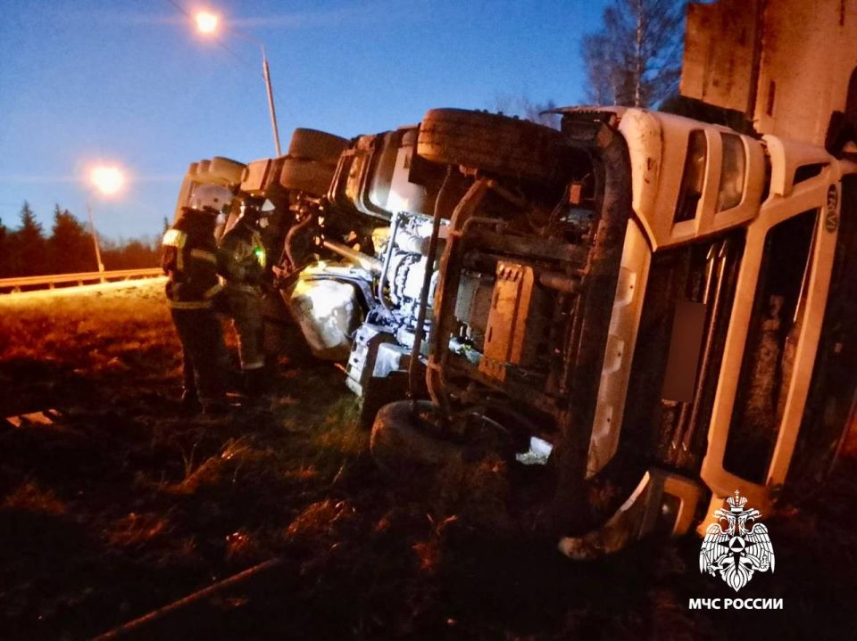 Сегодня на трассе М-10 в Торжокском МО сотрудники 13 ПСЧ ликвидировали последствия съезда в кювет с последующим опрокидыванием двух