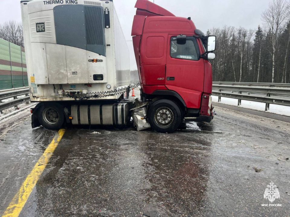 Сотрудники 13 ПСЧ ликвидировали последствия ДТП на 236 километре М-11 «Нева» в Торжокском МО, где грузовой автомобиль совершил наезд на ограждение.