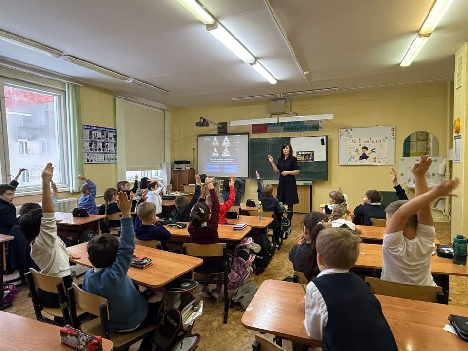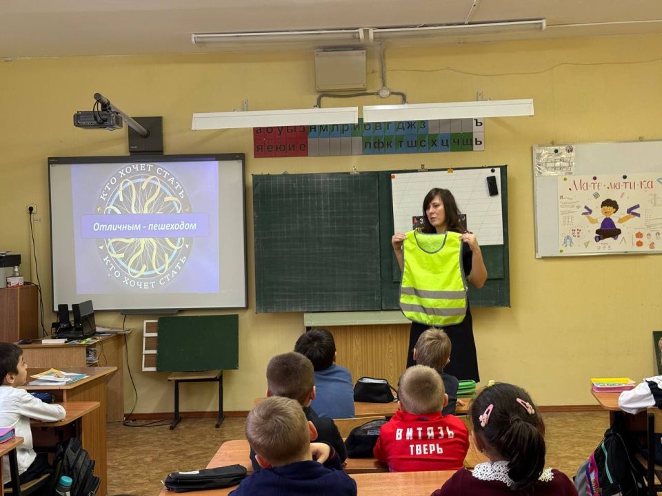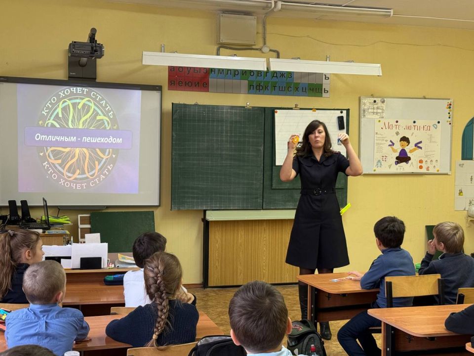 Первоклассники из средней школы №18 города Твери поучаствовали в игре по Правилам дорожного движения «Кто хочет стать «Отличным пешеходом»