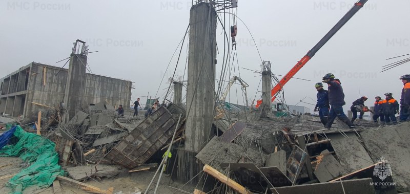 Три человека, предварительно, находятся под завалами после обрушения части двухэтажного строящегося здания в Южно-Сахалинске. Об этом сообщает ГУ МЧС по региону.