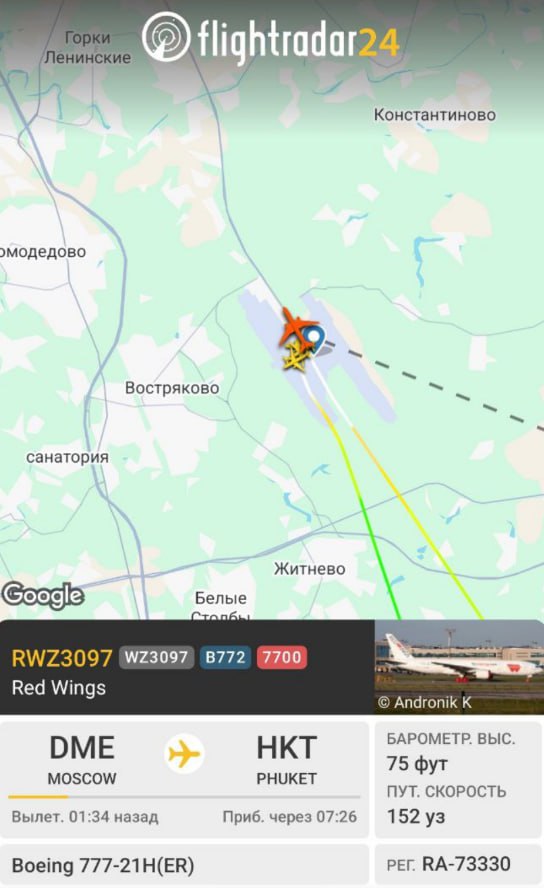 Самолёт, экстренно вернувшийся в Домодедово из-за пожара в двигателе, благополучно приземлился, сообщают СМИ.