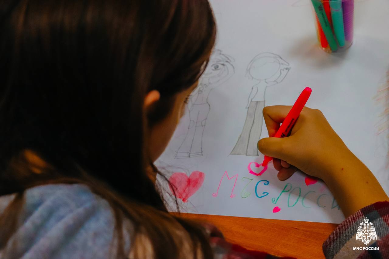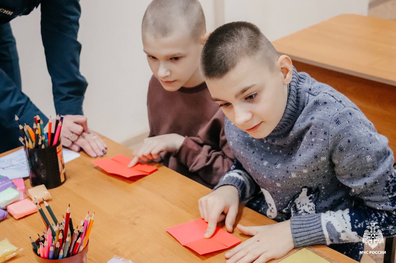 Вместе с психологами ребята сделали стенгазету, посвящённую 35-летию ведомства. Из цветной бумаги дети складывали пожарные автомобили — самый узнаваемый символ ведомства.