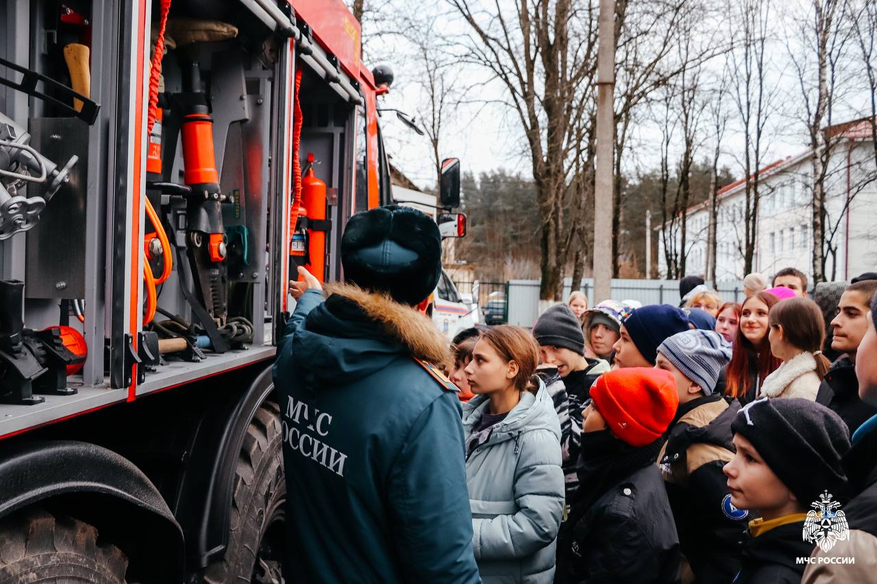 Началась встреча с познавательного фильма об истории МЧС России. Также детям рассказали о технике, которую применяют пожарные в своей деятельности.На территории школы-интерната развернулась интерактивная площадка: автомобиль первой помощи, автоцистерна и мобильный комплекс информирования и оповещения населения (МКИОН).