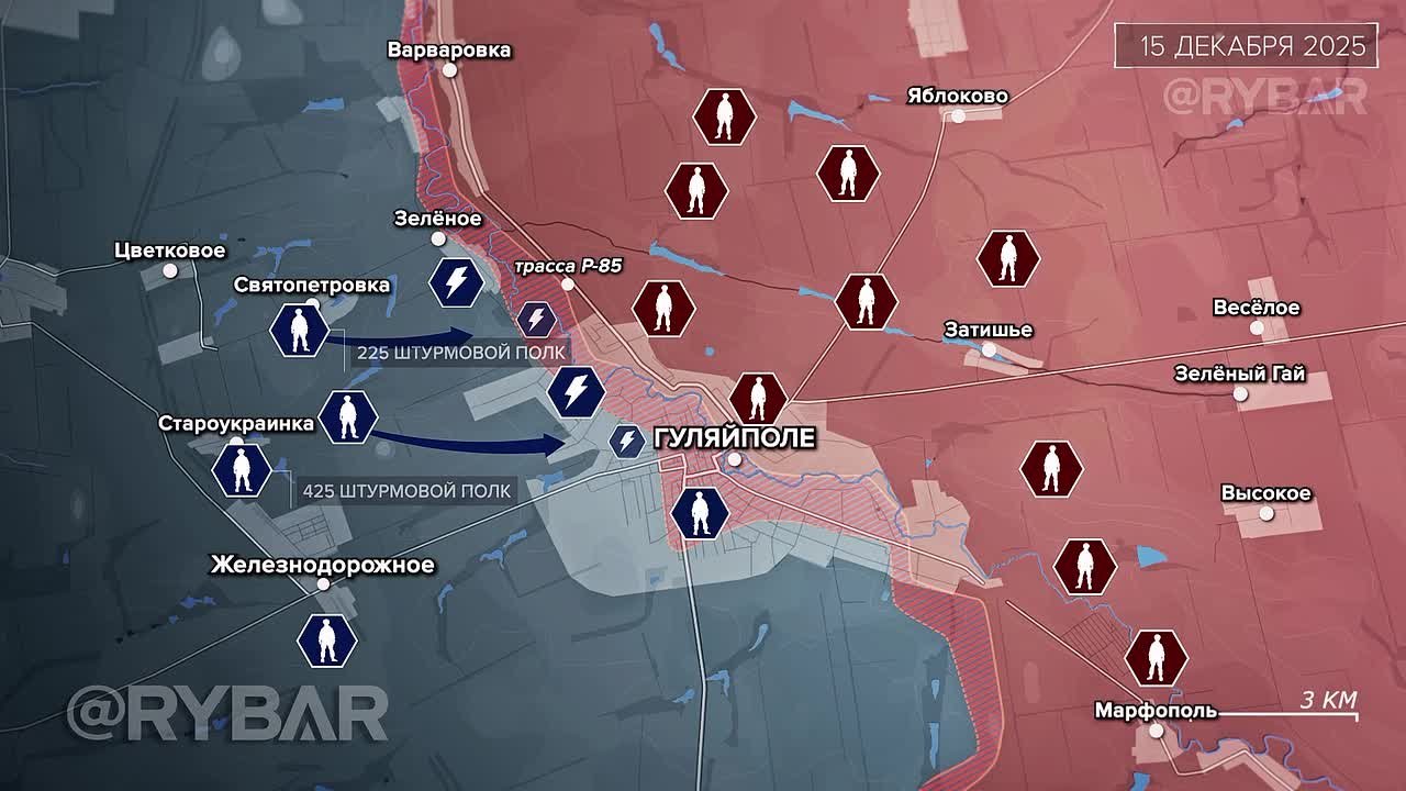 К 14 декабря российские войска также зачистили соседнюю Варваровку, окончательно выдавив ВСУ с правого берега Гайчура на этом участке и установив контроль над северным въездом в Гуляйполе по трассе Р-85.