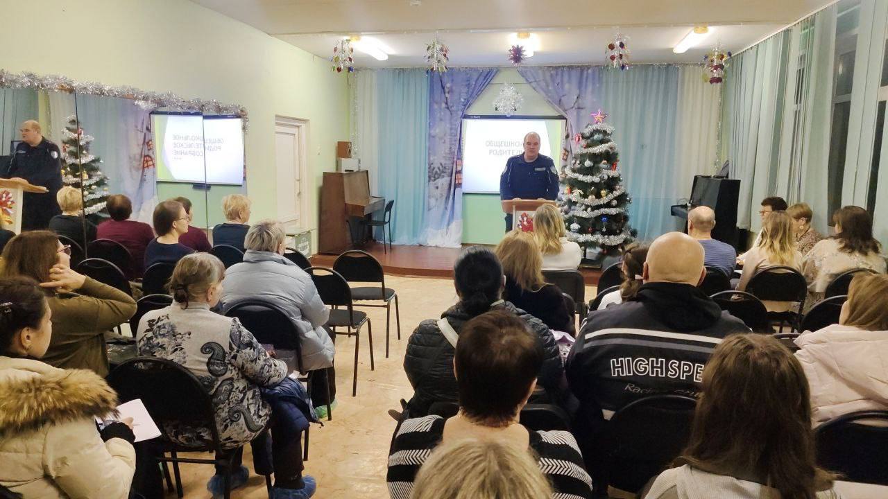 18 декабря в преддверии зимних школьных каникул сотрудники Госавтоинспекции приняли участие в родительском собрании в МОУ СОШ № 55 города Твери. В ходе проведения родительского собрания полицейские познакомили родителей со статистическими данными ДТП с участием детей на обслуживаемой территории, акцентировали внимание взрослых на конкретных примерах правонарушений, которые допускают несовершеннолетние, рассказали о необходимости использования специальных детских удерживающих устройств при перевозке детей в салонах автомобилей, которые в несколько раз позволяют снизить тяжесть последствий при ДТП и помогут сохранить ребенку жизнь. Кроме того, напомнили об эффективности использования световозвращающих элементов при движении в темное время суток и в условиях недостаточной видимости.