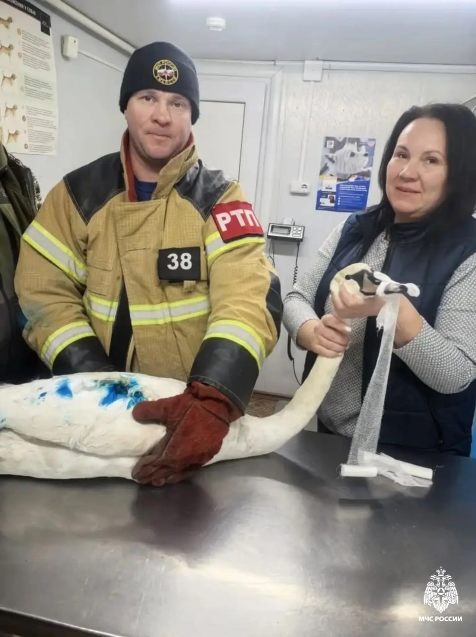 Сотрудники 38-й пожарно-спасательной части совместно с представителями Министерства природных ресурсов региона и членами общества охотников и рыболовов Лихославльского района приняли участие в спасении лебедя с травмой крыла.