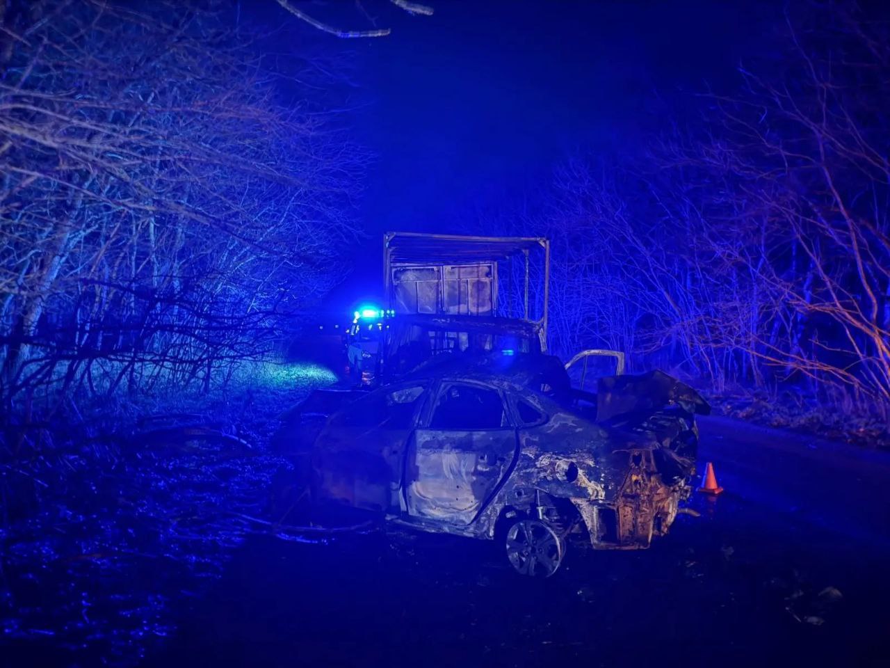 Авария произошла на 5-м километре трассы "Ставрополь — Новомарьевская — Каменобродская" в Шпаковском округе. По предварительным данным, водитель легкового автомобиля не справился с управлением, выехал на встречную полосу и столкнулся с грузовиком, после чего оба транспортных средства загорелись.