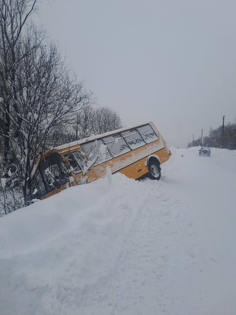 Автобус с детьми съехал в кювет в Красноярском крае. Пострадал только водитель.