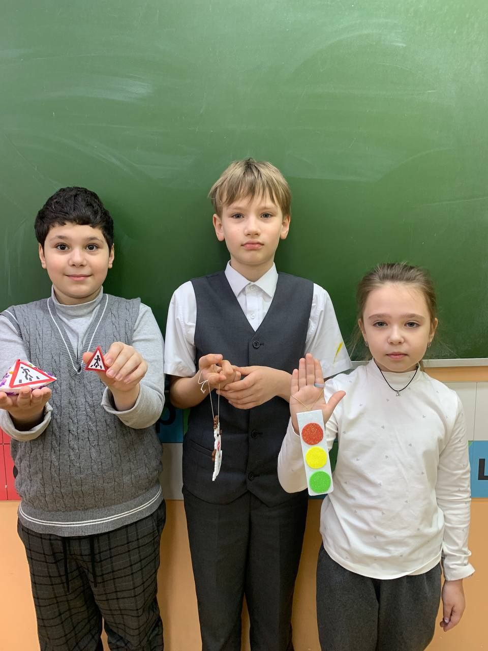Ребята нарядили самодельными игрушками елочки в классах и заодно повторили Правила дорожного движения.