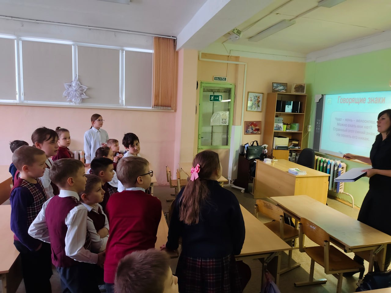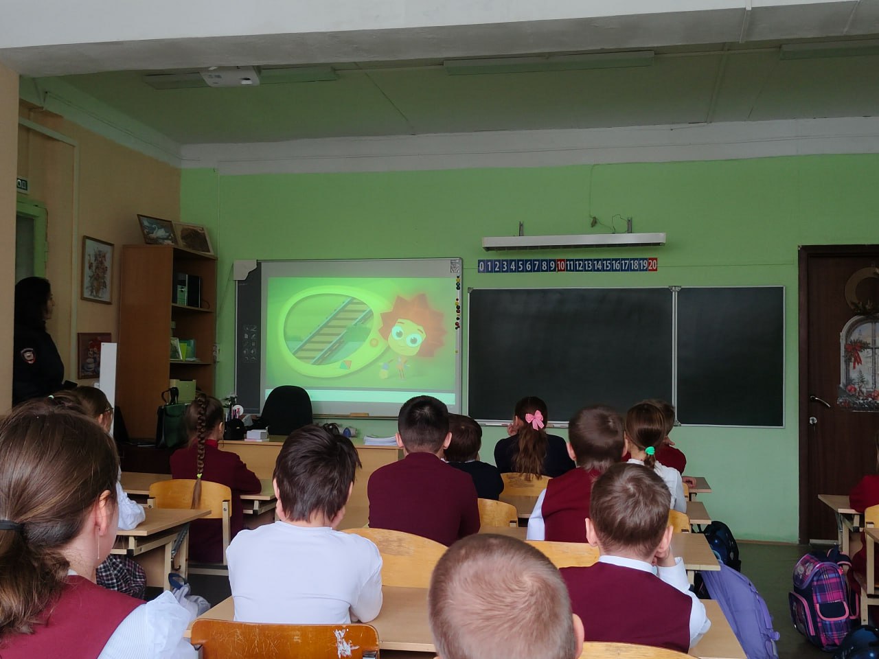 Далее сотрудники Госавтоинспекции провели игру по Правилам дорожного движения «Правила движения – достойны уважения!». В ходе игры с использованием видео экрана ученики повторили дорожные знаки, как работает светофор и для чего он нужен, в каком месте безопасней переходить дорогу. Все задания были направлены на развитие внимания, памяти и закрепление знаний Правил дорожного движения. С ребятами повторили правила для юных пешеходов и пассажиров в преддверии зимних каникул.
