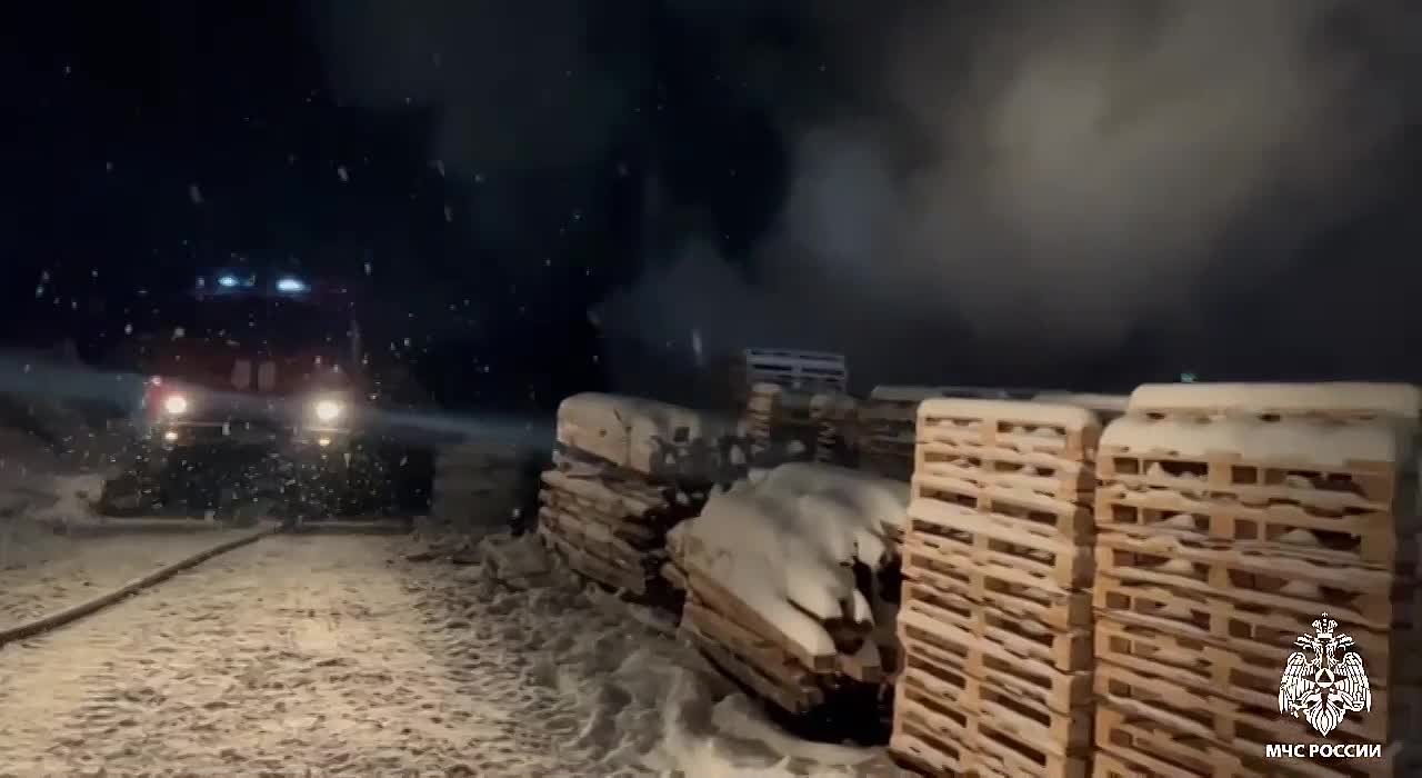 30 декабря огонь охватил цех по производству деревянных поддонов. Пожар устранили сотрудники 9, 61 ПСЧ при поддержке ДПК «Солнечный».