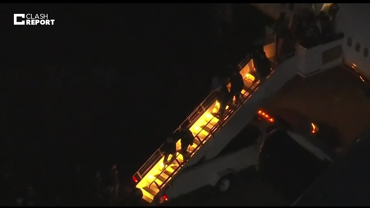 Мадуро с женой выводят из самолета на авиабазе Стюарт в Нью-Йорке для дальнейшей отправки в следственный изолятор в Бруклине.