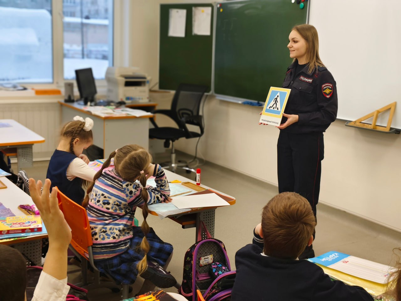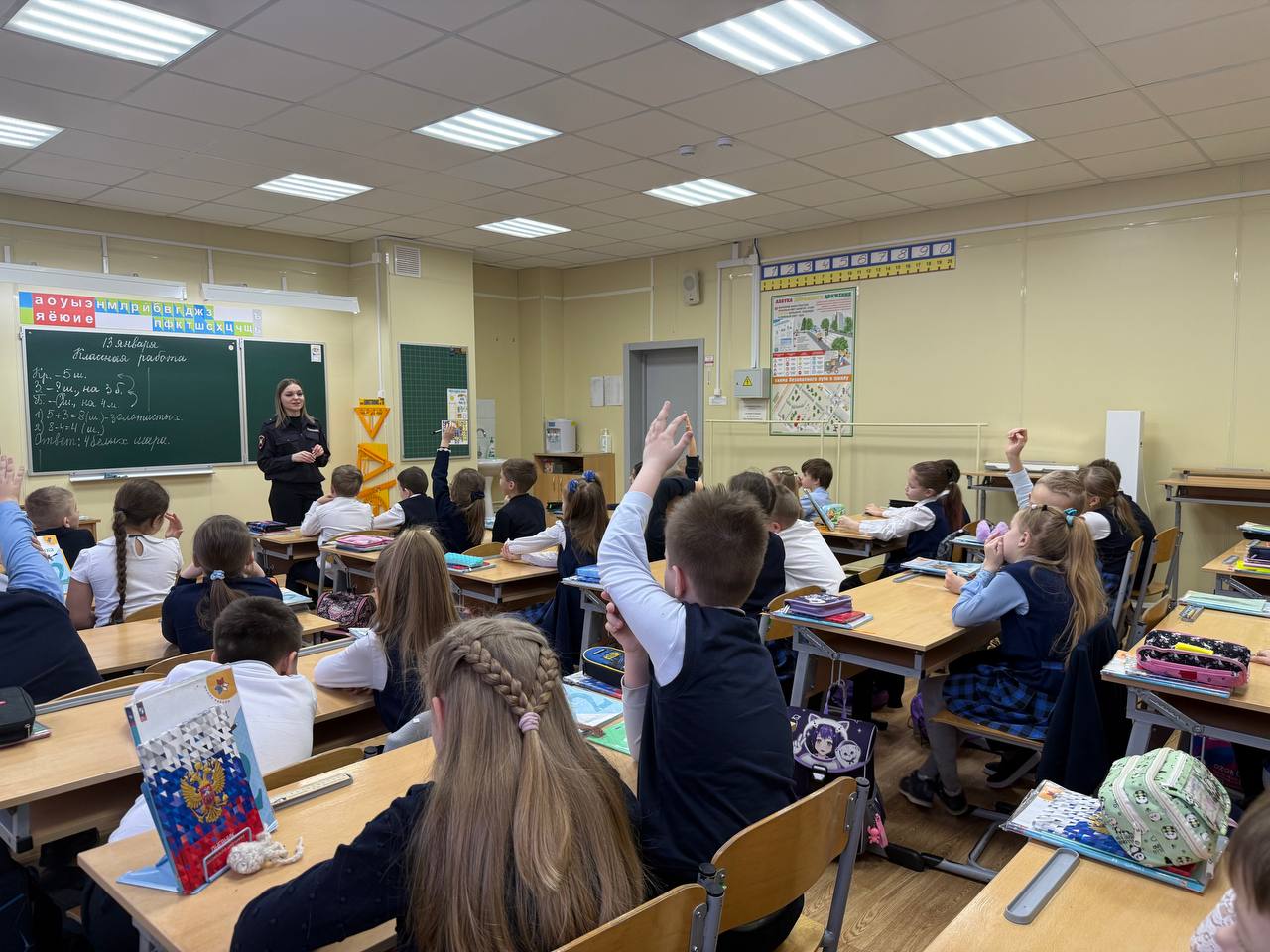 В целях профилактики аварийности с участием несовершеннолетних 13 января 2026 года сотрудники Госавтоинспекции посетили учащихся МБОУ ЦО №49 города Твери. Инспекторы по пропаганде БДД напомнили школьникам алгоритм безопасного перехода через проезжую часть, а также рассказали о важности использования световозвращающих элементов в одежде и на рюкзаках. Полицейские объяснили ребятам, что световозвращатели увеличивают в несколько раз расстояние, с которого водитель может заметить пешехода в темное время суток. Помимо этого, автоинспекторы поговорили с ребятами о «дорожных ловушках», которые могут подстерегать пешехода в дорожной среде и создавать опасные ситуации.