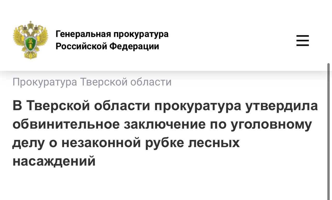 Прокуратура Рамешковского района Тверской области утвердила обвинительное заключение по уголовному делу в отношении двоих жителей Тверской области. Они обвиняются по ч. 3 ст. 260 УК РФ (незаконная рубка лесных насаждений в особо крупном размере).