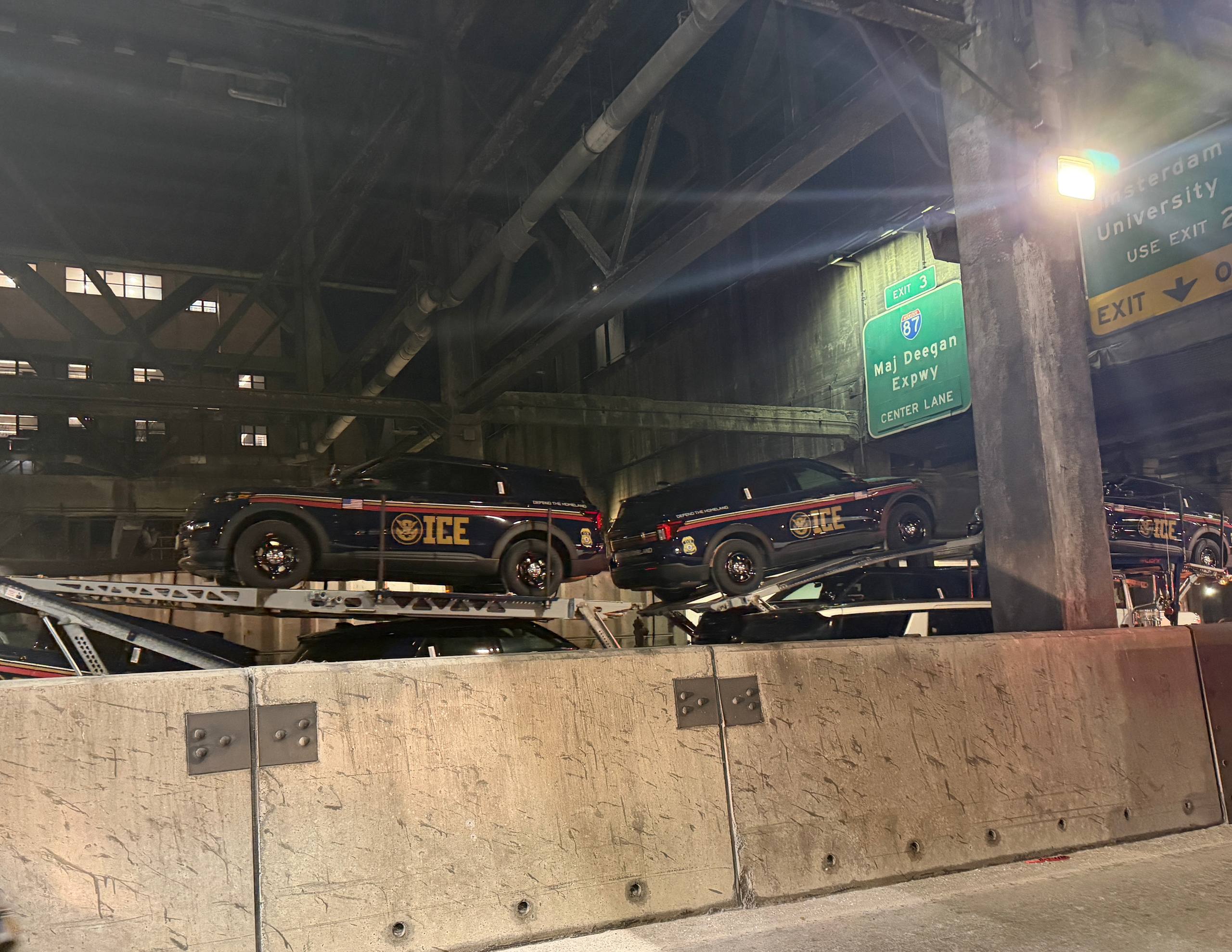 Иммиграционная и таможенная полиция США (ICE) продолжает укрепляться и превращаться в одну из крупнейших американских спецслужб. Вот через Нью-Йорк везут новенькие внедорожники. Вероятно, в сторону штата Мэн, где началась очередная операция против нелегалов под названием «Дневной улов».